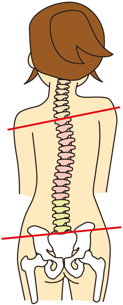 なんらかの理由で下肢・骨盤・背骨等に歪みがある場合は頸部でバランスをとって目線を平行に保つように調整するので頸部が歪んだ姿勢になります。